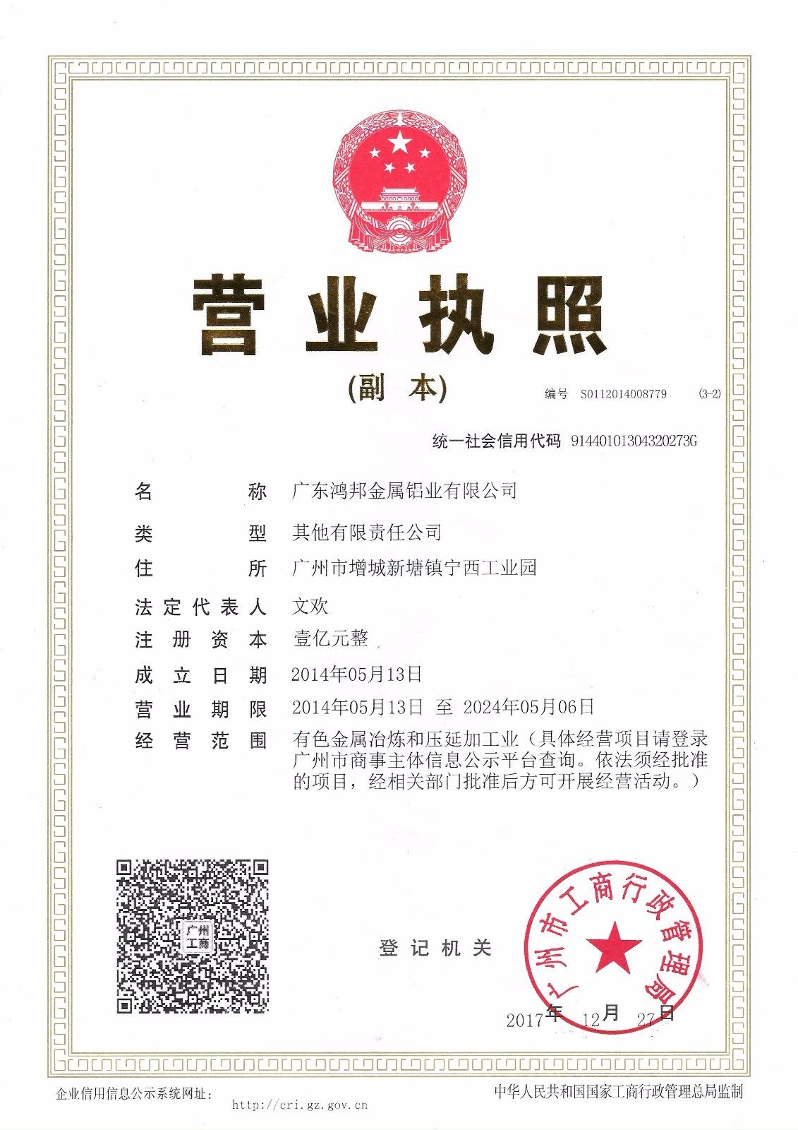 廣東鴻邦金屬鋁業有限公司成立于2014年5月,是一家由廣州工業投資控股集團有限公司、華勁集…